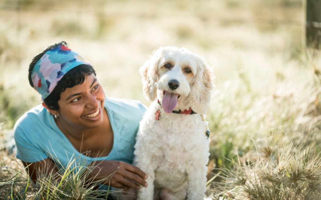 Naveena’s life changed forever following her diagnosis of breast cancer. Pictured here with her pet dog, she is thankful for the treatments she received but hopes others can safely avoid the side effects she still experiences.